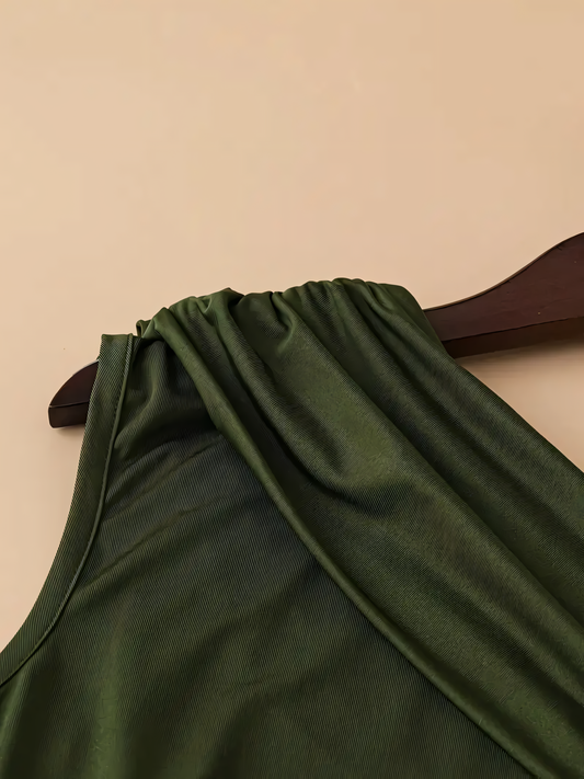 Set Verde cu Top Off-Shoulder și Pantaloni Scurți Largi - Ținută Elegantă de Vară în 2 Piese