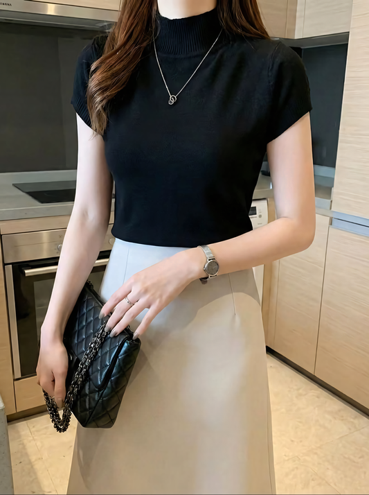 Top Premium din Viscoză Naturală – Maletă Fină cu Mânecă Scurtă, Stil "Old Money"