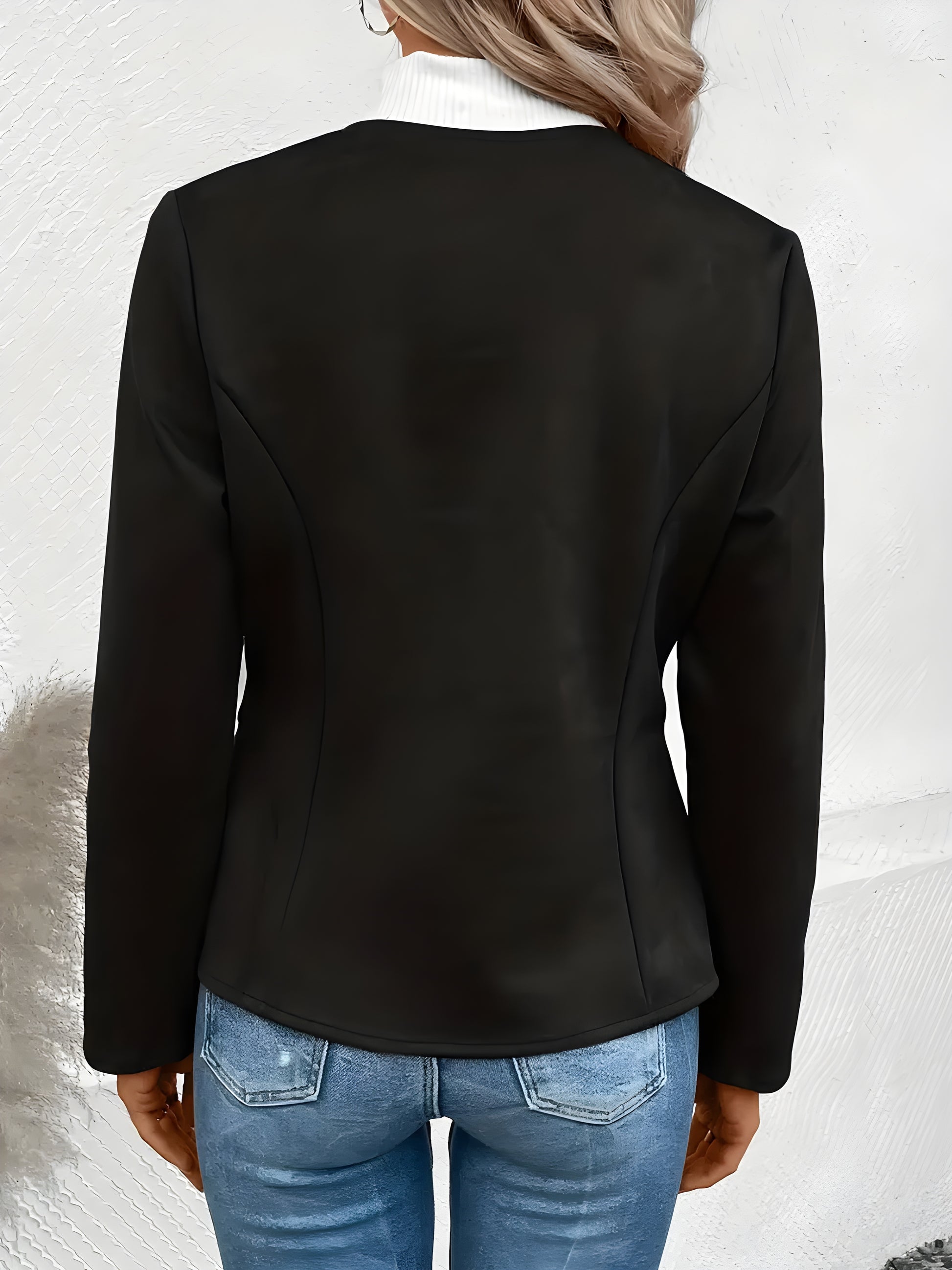 • Design Modern: Fermoar frontal, buzunare false și croială tip sacou, pentru un aspect casual-chic.