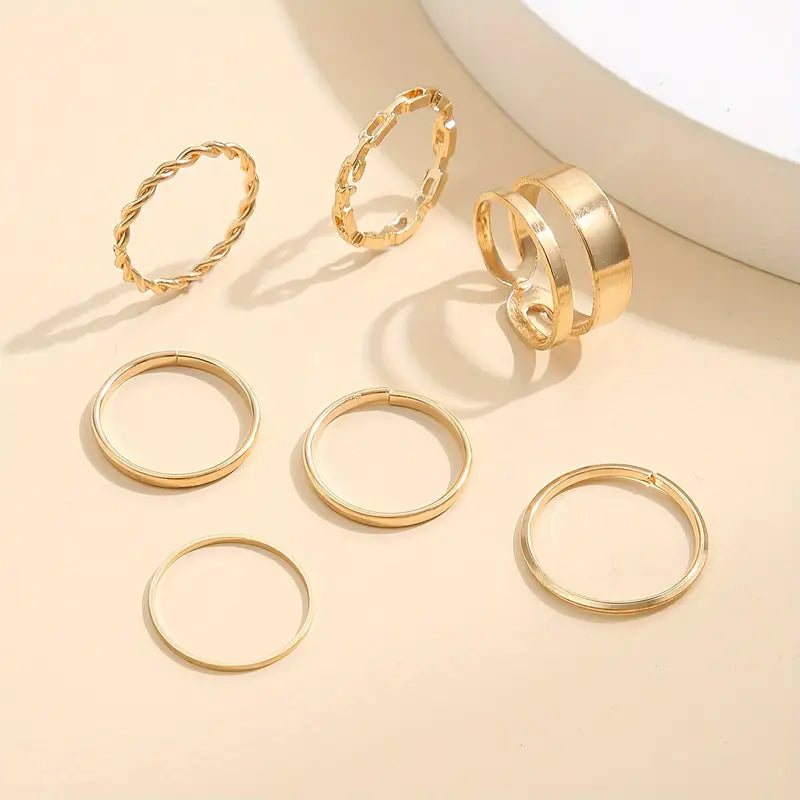 Îmbogățește-ți look-ul cu acest set multiplu de 7 piese, perfect pentru a adăuga un strop de rafinament oricărei ținute! Construit cu un lanț gol împletit cu spirală geometrică multi-elementară și inele de modă pentru femei, acest set elegant și simplu se remarcă prin designul său modern și versatilitate absolută.