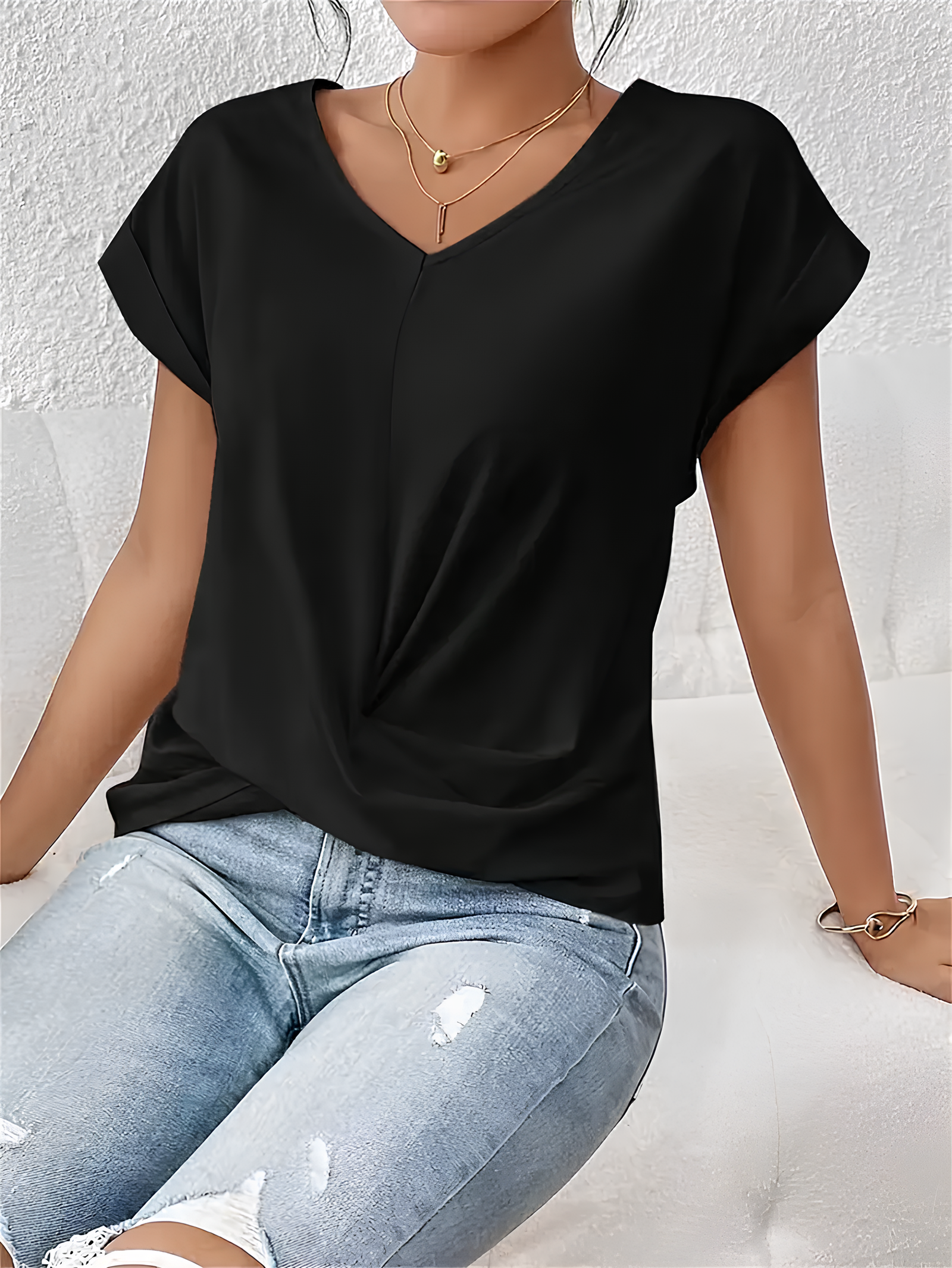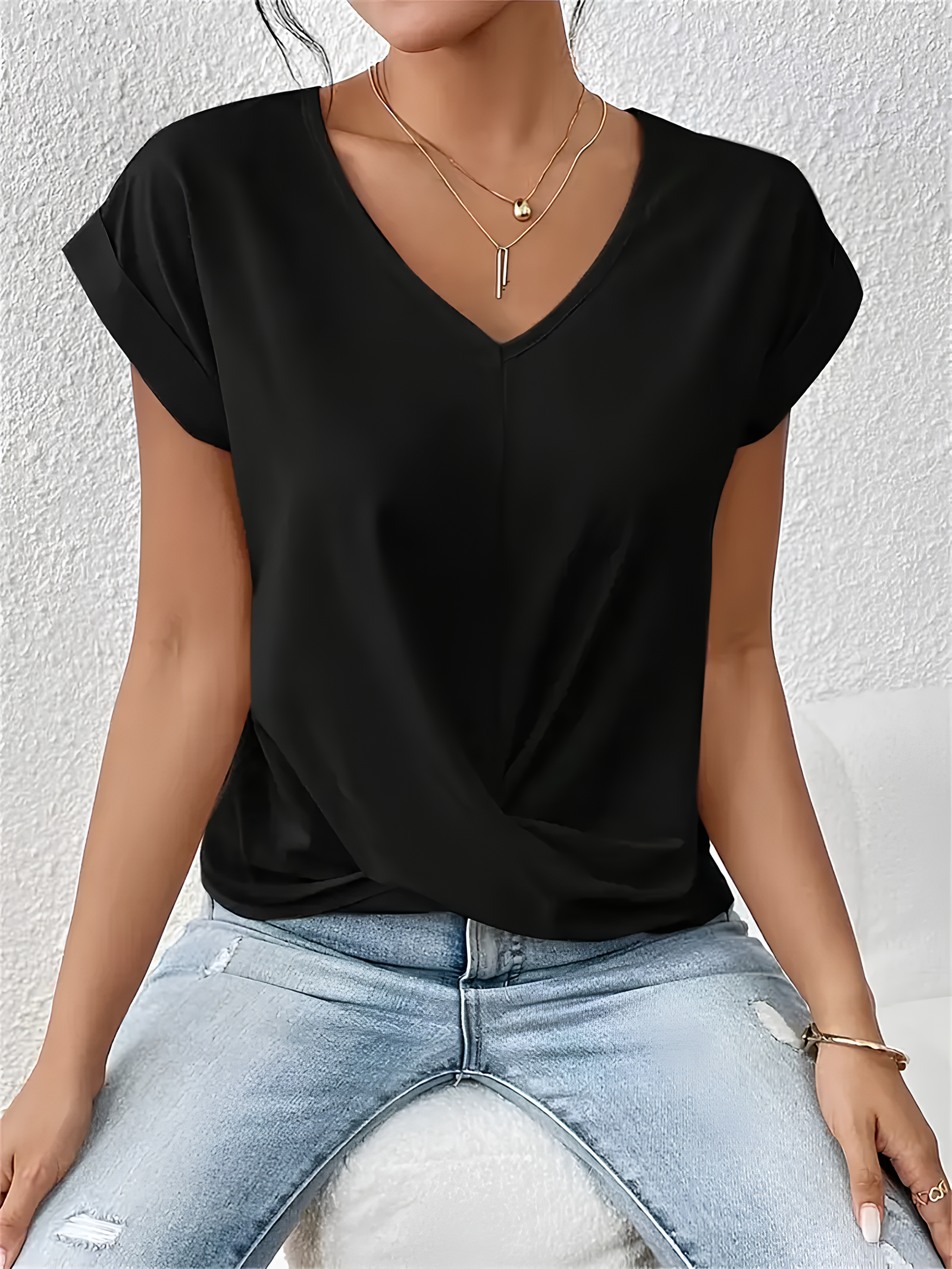Descoperă un tricou esențial în garderoba ta de vară! Fabricat dintr-un amestec de 95% poliester și 5% elastan, acest top oferă microelasticitate pentru un plus de confort. Designul cu culoare solidă și guler de tip “Dragă” (V-neck) îi conferă un aspect modern și feminin, potrivit pentru orice ocazie.