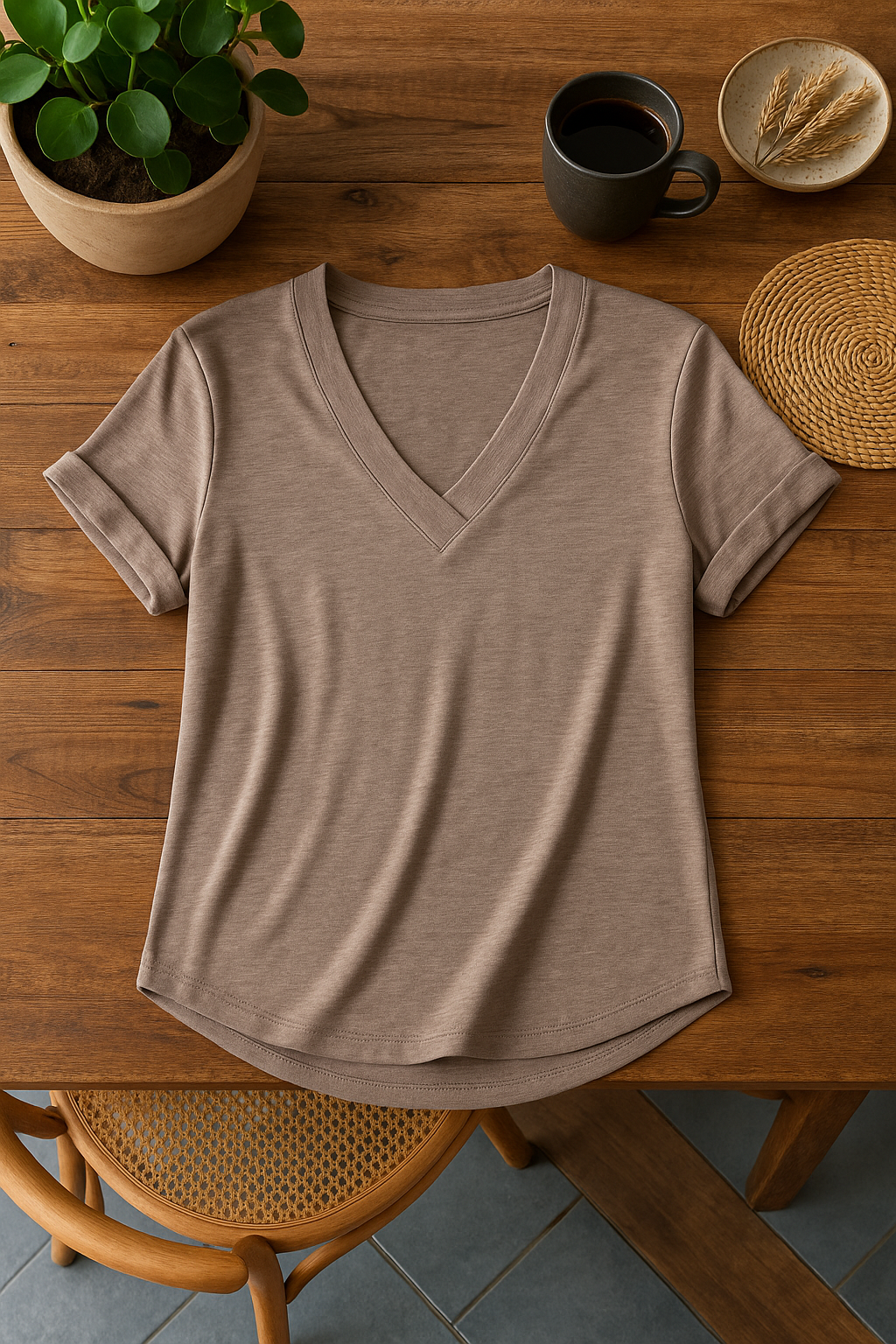 Tricou Damă cu Decolteu în V - Top Casual Moale pentru Primăvară Vară Toamnă